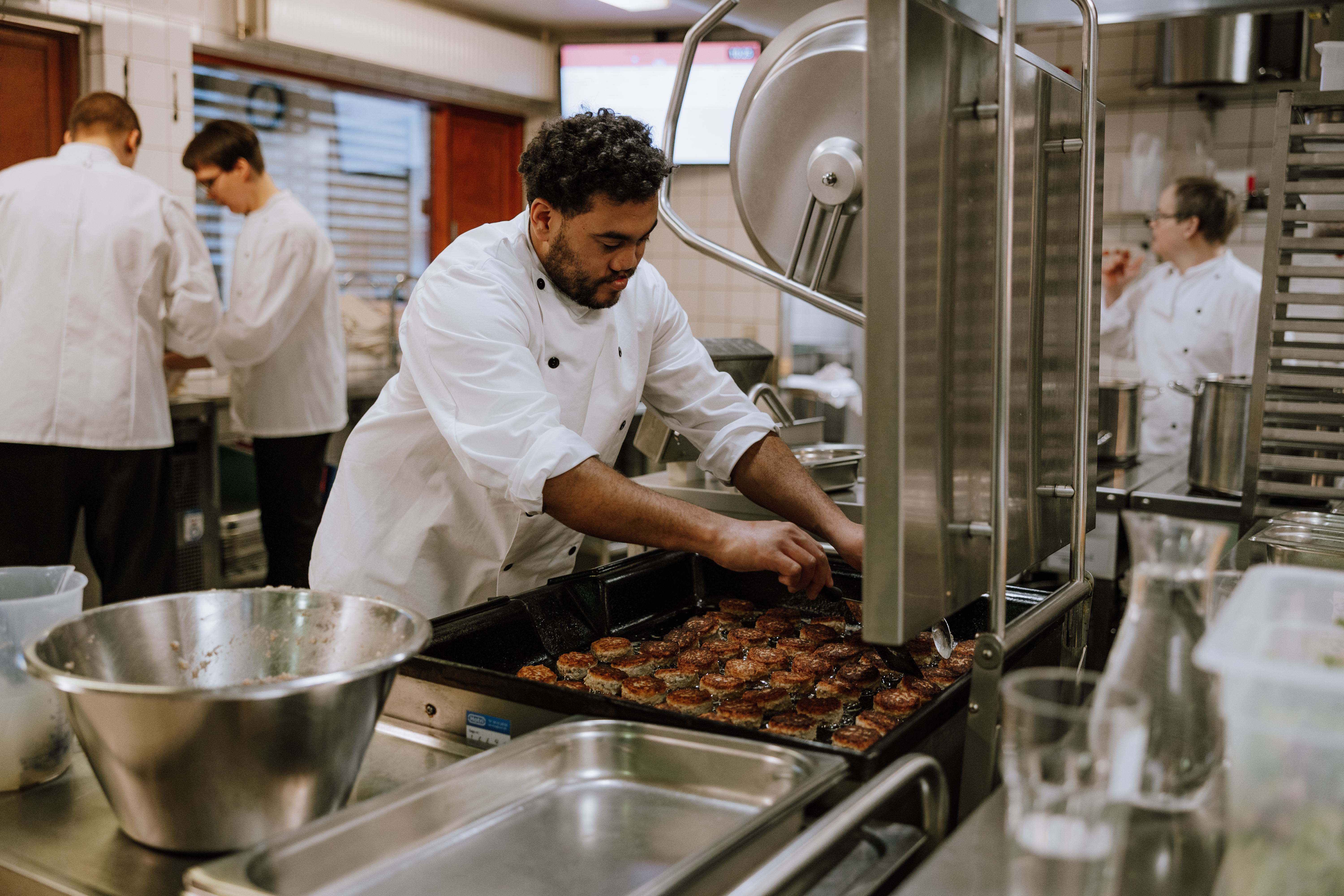I hjertet af Zahlesvej ligger vores store produktionskøkken, hvor duften af frisklavet mad breder sig hver dag. Her laver vi ærlig mad fra bunden af gode, friske råvarer – til glæde for de ældre på kommunens tre plejecentre. Det er vores centralkøkken og en af vores største arbejdspladser, hvor mange hænder arbejder sammen om at skabe noget, der virkelig gør en forskel.